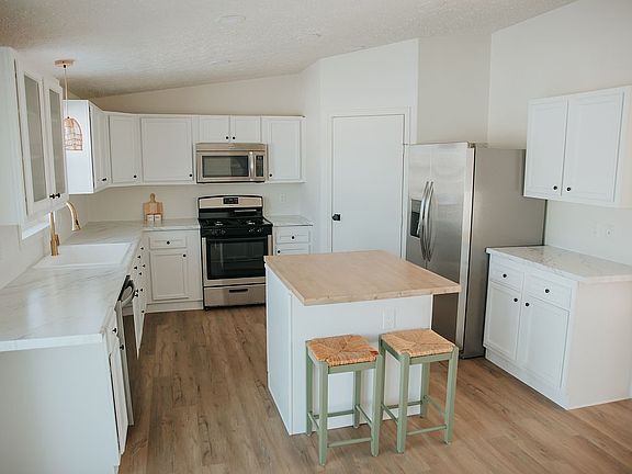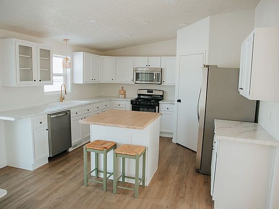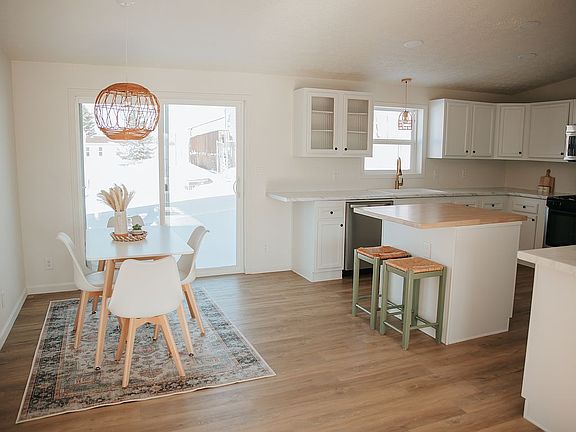 This fully remodeled manufactured home is perfect for anyone! Located in a quiet, friendly neighborhood in North Bismarck. The 1,680 sq ft includes a nice sized kitchen featuring a butcher block island, stainless steel appliances and a coffee bar/buffet, spacious living room, 3 bedrooms, 2 bathrooms, an office, and a large laundry room. The master bedroom has a walk-in closet and attached master bathroom with a large vanity, shower, garden tub, separate toilet room, and linen closet. There is room to build a 2 stall garage and currently has a concrete parking pad for two vehicles. The newly redone front porch is perfect for enjoying Bismarck's beautiful summer nights. New features include: -All walls and ceilings painted -All new flooring includes luxury vinyl plank, carpet, and bathroom floors -All new lighting throughout -Kitchen cabinets redone -New kitchen countertops, sink and faucet -New stainless steel appliances -Vanities redone -New bathroom faucets and sinks -New toilets -New water heater -All new hardware throughout -Decks redone Entire remodel just completed in February 2023. Address: 4013 Chandler Lane Home specs: 2004 Schultz 28X60 Lot rent: $475 (includes garbage) All furniture and decor items can be included for an additional $3,500. Contact Noah at 701.955.5268 to schedule a showing!