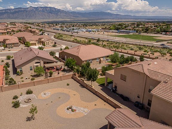 Yes, location is everything! This fabulous DR Horton, one-owner home features great open floor plan, tile in common and wet areas, dramatic vaulted ceilings, eyebrow arched doorways, SS Appliances, lots of natural lighting, flowing into the living area w/fireplace, Master Suite is separate from other bedrooms. Large master bath and large walk-in closet. Additional nice sized bedrooms with walk-in closets. Huge, newly landscaped back yard with views of the Sandias! Home faces West which is great for cool evenings in the back yard! Kinetico water softener and drinking water system throughout the home, plus alarm system. This home is absolutely clean throughout...don't miss this one.