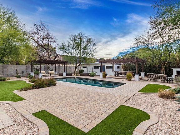 Stunning 2013 NEW build. There are no other lots or yards like this in this price point. Turnkey low care yard complete with diving pool, ramadas, built in bbq, speakers, fireplace and large patio make this home an entertainers dream. Flat black matte cabinets with brass hardware, hardwood in touches, large island eat in kitchen, this home truly has it all. 4 bed and 3 full bathrooms plus a bonus office/ front toy room. Perfect for kids or lock and leave lifestyle. Walking distance to parks, Arcadia's best restaurants and friendly communal street.