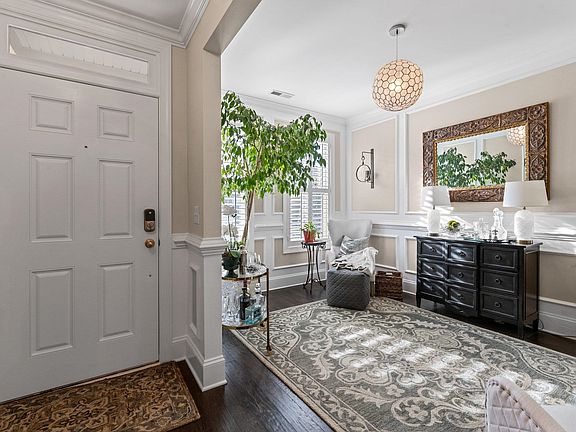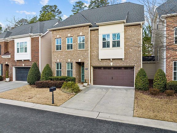 The total package-style, function and location! Brick front and well-appointed TH connected only by storage units. Kitchen features gas cooktop, tile backsplash, wall oven and large center island with cabinets and shelving. Open FR with gas log FP and recessed lighting. Dining room (currently being used as a flex/gathering space) offers custom millwork. FIRST floor BR and FULL bath. Large primary BR on second floor highlighted by trey ceiling, wall of windows, double WICs and lux bath boasting soaking tub and sep shower. Large secondary bedrooms. Second floor loft makes a great craft, office or TV space. Third floor bonus room and full bath. Spend spring nights on your covered rear porch or open patio. Fenced back yard backs to wooded area. Recessed lighting, FOUR full baths, TWO car garage, plantation shutters, walk in pantry, coat drop area and so much more to see in this special home.