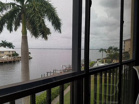 $19,900 PRICE REDUCTION FEB 22ND!!! Amazing views from this Third Floor END unit in Rivers One - River Access NO Bridges! . Relax in the living room or on your screened in lanai sipping a cold one and admire the boats going by as they enter & leave on their water excursions. View across the 200 foot wide Plato Canal and views out to the River. This building/complex does have an elevator to make access easier for those that do not like to climb stairs. Two bedroom split floor plan with a laundry room just off of the kitchen, full size laundry units with cabinets and countertop for a decent laundry service. Appliances are in great new like condition and the AC was replaced in Dec 2015. Walking distance to Jaycee Riverfront Park with walking paths, picnic tables, BBQ grills and Gazebos. Location is a short drive to downtown Cape Coral & Fort Myers. There is under building assigned parking which is a plus during inclement weather. Make this property yours and start enjoying the community pool, views and the lifestyle that SW Florida has to offer!!