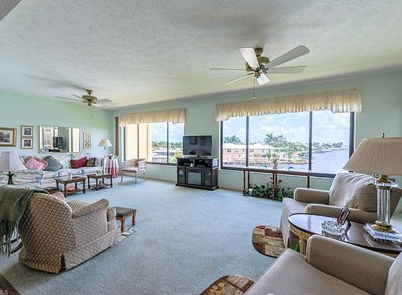 This amazing Beach Parkway condo has views found only in this building - expansive views of the huge Plato Canal and the Caloosahatchee River near its widest point. The panoramic view from this 3rd floor condo is spectacular - in no small part because the layout of the unit is along the front of the building with two huge picture window facing northeasterly in line with the lanai - all open to the river/canal view. This is only one of the two units with this layout on the third floor. This newly updated, 2 bedroom/2 bath home has a split floor-plan. It boasts a Murphy Bed in the second bedroom, new carpets, and new paint and new fans throughout. The master bedroom has dual-sink vanity, an up-dated shower, comfort-height toilet and a huge walk-in closet, The lanai off the Master Suite is enclosed so it can be under air for additional comfort. The laundry room, with new (2017$ full-sized washer and dryer, offers plenty of shelves and cabinets for in-unit storage. Right across the entry hall is a spacious kitchen with new (2017) electrical appliances in slate color - easy to maintain. The pass-through to the dining room provides for easy entertaining and gives the kitchen access to the river/canal views in addition to the window with a view of Jaycee park in front of the sink. The property is beautifully landscaped and well-maintained. The property owners care and it shows. The large swimming pool with bath house is right on the water by the boat docks offering view from the pool as well as the unit. Covered parking for your vehicle is at ground-level, under the building, convenient to the elevator with extra parking in front of the property. There is a deeded, individual storage unit on the ground level as well as a community storage closet on each floor. There is very low traffic since this condominium is located on a cul-de-sac. Rivers I Condominium is only steps away from the popular Jaycee Park and all the events that are scheduled there. The exterior remodel of all the tile walks, stairways, and elevator plus reconstruction/refinishing of the raised flower beds and exterior painting is being completed in November 2017.