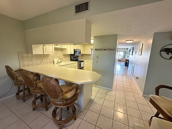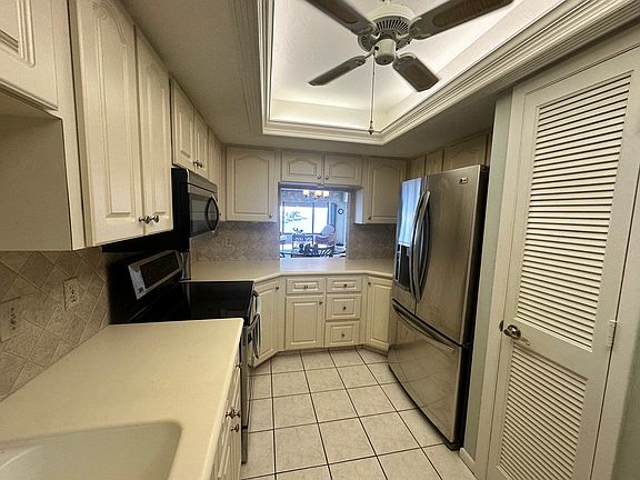 What a view This beautiful waterfront condo offers breathtaking views of the condominium pool and the Caloosahatchee River. This 1300 sq. ft. unit is on the 4th floor. It is a 2 bedroom (split floorplan) and 2 bathroom unit. The kitchen has a large breakfast bar with stools. The kitchen has lots of cabinets, counterspace and upgraded stainless appliances. The main living area is a very large open layout. The primary bedroom has a king bed and large closet. The primary bathroom has a walk-in shower and double sinks. The guest bedroom has a full-size bed with a large closet. The second bathroom has a shower with tub. The laundry room is located in the unit. The unit has tile floors throughout. This unit offers plenty of space for relaxing and entertaining. Rental includes covered parking for 1 car. The building has exterior stairs and elevators. A beautiful large community pool overlooks the Caloosahatchee River. The rental includes: Wifi, electricity, water & sewer. No smoking in unit or on property. 55+ condo community. Three-month minimum rental (November $5000, December $5000, January $6500, February $6500, March $6500 & April $6500). Application and background check required. This rental is located on the waterfront in Cape Coral, Florida. It is just a few minutes' walk to Jaycee Park, where you can enjoy nature and views of the river, bbq pits, and enjoy beautiful sunrise/sunset views and events throughout the year. The park has beautiful views on the walking path as well as fitness stations. The location is only minutes from restaurants, bars, & shopping. Fort Myers Airport 17 miles, Punta Gorda Airport 29 miles, Fort Myers Beach 12 miles, Sanibel Beach 19 miles, Downtown Cape Coral 2 miles, Downtown Fort Myers Riverfront 11 miles, Cape Cabaret 2 miles, Barbara B Mann Theatre - 6 miles, Bell Tower Shops 7 miles, Edison Mall 9 miles. Owner pays: Wifi, electricity, water & sewer. No smoking allowed in unit or on the property. Security deposit due at time of application in addition to application fee. Full payment due 30 days prior to check in. No pets allowed.