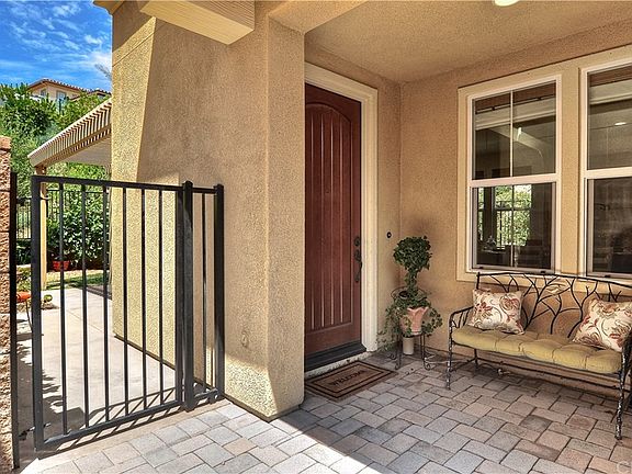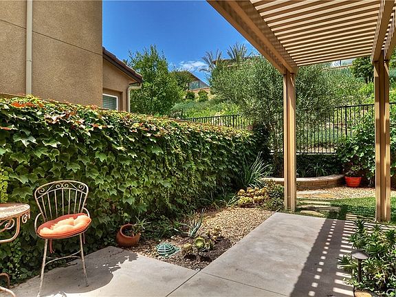 Welcome to Vermillion Court, in the popular Villaggio Community. You will love relaxing in the amazingly private and secluded backyard in this detached home. The tranquil and peaceful setting with unobstructed green belt views allows complete privacy in this beautifully landscaped over-sized yard. End of street location makes this one of the most sought after streets. Enjoy the serene atmosphere with multiple patios, mature landscaping and raised flower beds. Inside you will enjoy all the amenities. The kitchen offers slab granite counters, island with seating, stainless appliances, subway tile back splash, double ovens, rich cabinetry, a five burner stove and all open to the dining area and family room. The home boasts custom lighting, hardwood floors and custom window coverings throughout.. A powder room, indoor laundry room and direct access to your two car garage, complete the downstairs. The gorgeous master bedroom and bathroom offers dual vanities, separate soaking tub, walk-in shower, a walk-in closet and amazing views of the beautifully maintain hillsides. Two additional bedrooms with Jack and Jill bath are well appointed. Community offers beautiful pool and spa, tot-lot for the little ones and meticulously maintained grounds. Award winning school district and walking distance to Yorba Linda High School. Yorba Linda Town Center is just minutes away and close to freeways, fine dining and shopping. Low association and tax rate makes this an ideal place to call home.
