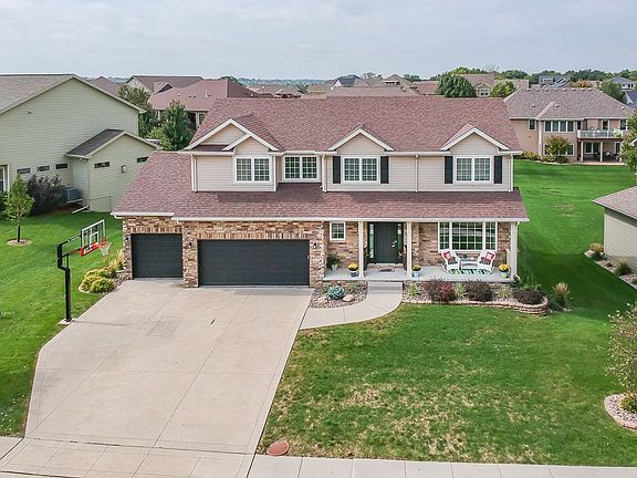 This fabulous 6-bedroom, 6-bathroom, 2-story home in Urbandale offers plenty of room to roam and is filled with awesome upgrades. Perched on a small rise, this home has wonderful curb appeal and is located in a family friendly, highly sought after neighborhood on a quiet cul-de-sac. A large covered front porch spans much of the front and is surrounded with impeccable landscaping. When your guests step inside the spacious entry foyer, they'll immediately notice the stunningly beautiful, scratch-resistant strand woven Eucalyptus floors that run throughout the main level. The entryway flows into the main living area that includes the family room, casual dining area and kitchen. The main focal point of the family room is a contemporary styled gas fireplace that's flanked with windows to bathe the area in sunlight. The family room is wide open to the dining area and kitchen. The dining area includes a sliding door exit to a magnificent stamped and stained concrete patio that's perfect for grilling and all your outdoor entertaining. More fantastic landscaping adds to the beauty of the backyard. Back inside, the contemporary kitchen will make you say WOW. You'll love the stunning quartz countertops and tile backsplash. There's a convenient center island, a pantry and the stainless appliances are included. The far side of the kitchen is open to a more formal dining room with a built-in butler's pantry and glass-fronted cabinetry. This level also includes a large office/study that's secluded behind French doors. And, this floor has a half bath and there's a good-sized mudroom with a built-in drop zone between the kitchen and the 3-car attached garage. You'll find the oversized master bedroom on the upper level. It's carpeted and features a tray ceiling, a shiplap accent wall, and a huge en-suite bathroom. The bathroom includes a tile floor, tiled oversized shower, dual sinks, a corner jetted tub, and a linen closet. There's also a massive walk-in closet. There are 3 more bedrooms on this level and each has its own en-suite bathroom. One includes a good-sized walk-in closet. The laundry room is conveniently located on the upper level. The washer and dryer are included. There's also a small bonus room that's perfect as a craft room, a study space for the kids or for extra storage. On the lower level of the home you'll discover another magnificent space for your family to enjoy. There's a contemporary styled family room with a custom built-in for your TV. You'll love the convenience of the kitchenette with a sink and full-sized refrigerator. There are 2 bedrooms on this level, both with daylight windows and there's a full bath with a step-in shower. You'll also appreciate the unfinished space for clean and dry storage. This home is very near Webster Elementary and Des Moines Christian School. The owners of this home have meticulously upgraded every room in this house and it's truly one-of-a-kind that you won't want to miss. Call today to schedule a showing.