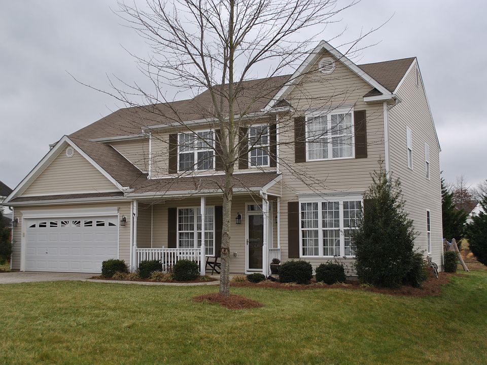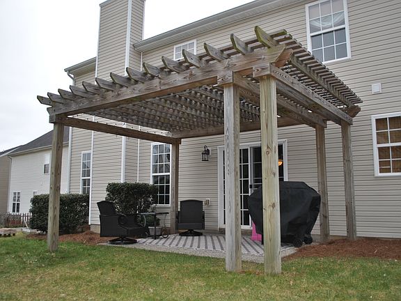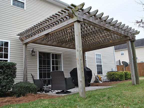 Traditional open floor plan that includes hardwoods and carpet. Main level floor plan features 9-ft ceilings, formal dining room, formal living room, office, kitchen with tile backsplash, full bath, fireplace and spacious laundry room. Upstairs floor plan features large master suite with his and her walk-in closets, 3 additional bedrooms with Jack and Jill bath. Exterior features include extended driveway, mature privacy trees and pergola covered back patio.
