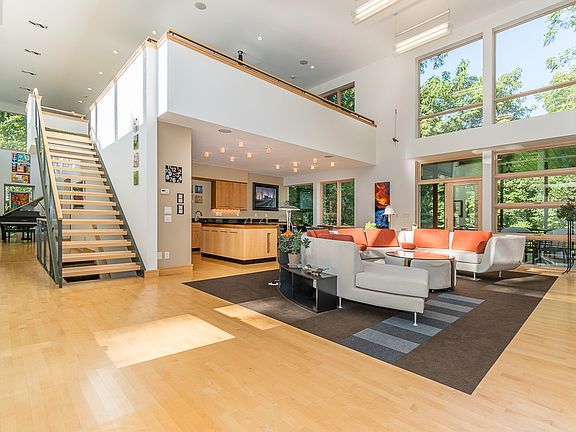 The articulation of an architect's dream home is available now to be your timeless contemporary haven. Created for the site to optimize nature's beauty, the home was meticulously planned, then constructed with the highest quality natural materials by a premier builder. To say the windows are fabulous and the home is light-filled is absolutely an understatement. The simplicity of the exterior design yields no hint of the awesome space within. Every element has been carefully selected blending craftsmanship and superior design. The spacious main floor master sanctuary is separated from the great room by gallery space adjacent to an open maple, steel and glass staircase. The second floor loft offers special seclusion. And the lower level is yet another thoughtful living area. Home details and amenities are available through your realtor. Call today for a private showing.