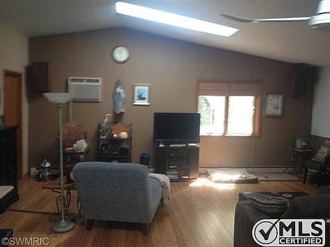 Sitting on 4.45 acres this home offers great privacy and great amenities. Large open living area which includes kitchen, dining, family and rec room and an adjoining 20x30 living room with fireplace and loads of windows. Kitchen is a galley style with large 4 place breakfast bar all with granite counter tops. Master bath with double sinks beautiful walk in shower and Juzzie tub. large 3 season room is a great place to relax and enjoy the cozy pond out front. Fire pit, terraced yard with flower and vegetable garden, dog kennel, patio and deck along with separate 30x30 out building. State Park rec area is across the street and Lake Michigan is 1/2 mile walk down the block. The home has excellent drinking water, 4 zone heating with extra insulation and low heating budget, tons of wildlife for viewing, making this a great place to live. Brokered And Advertised By: Nexes Realty Muskegon Listing Agent: David L Spyke