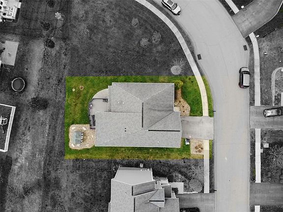 The deck has a great view of neighboring farmland, below you will find a stamped concrete patio, and an outdoor playhouse that can be converted to a shed.
