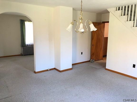 2 story home in Windber School District. Main floor has carpeted living with chandelier. Carpeted dining room. Eat-in kitchen includes appliances. 3/4 bath. 2nd floor has 3 carpeted bedrooms with closet. Full bath has tub/shower, vanity & is carpeted. Full unfinished basement. Covered porch. Shed. 48 x 55 Barn Ask about a home warranty. Call to schedule appointment!