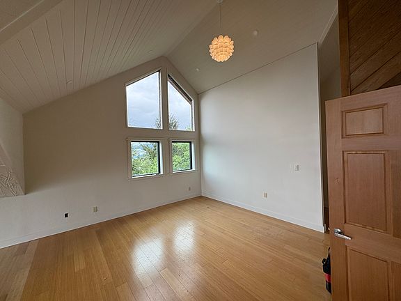 A castle in the sky with amazing ocean views, an expansive open floor plan, recently renovated, and with new appliances. Newly installed heat pump. Three private decks and a sauna. Spacious kitchen with ocean views. Two sets of washer/dryers. Waking distance to Halibut Point Rec. Access to the ocean across the street. Partially furnished. It is the top unit of a triplex. Pets are negotiable. One year renewable lease. Available August 1st. Utilities not included. Renter is responsible for utilities (electricity, trash, sewer, water). Pets are negotiable depending on breed, size, and rental reference. $3500 deposit along with first months rent due at lease signing. Off-street parking for up to three vehicles.