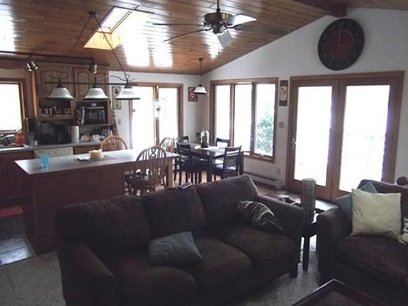 This stunner is priced to MOVE! 2BR, 2 full bath, laundry, fireplace, sand frontage, close to town on desirable large, 2800 acre chain of lakes. Incredible views from Kitchen and Living Room. Low maintenance lot, California style designed privacy with garage to road. Natural gas, high speed internet, central air, vaulted pine ceilings with skylights. Anderson windows, 35 yr premium new roof. Perm Pier. Snowmobile from front door, ATV from the back door.