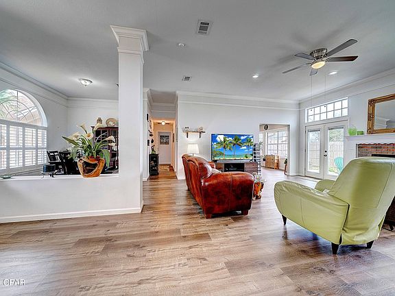 Well maintained 3-bedroom 2 bath home with approximately 1874 SF of living space in the well-established Northshore community. Homes front yard is landscaped with river rocks and palms trees with a beachy feel. A split bedroom plan, open spacious living room with gas fireplace, ceiling fan, double French doors leading into back yard. Kitchen has remodeled cabinets, quarts counter tops, gas oven with an air fryer built-in, stainless-steel appliance, newer kitchen sink. The dining room has 3'' plantation shutters and airy windows allowing plenty of light. There is luxury vinyl plank flooring throughout the home. Many upgrades like new water heater, spray in foam insulation in attic with rodent and termite repellent infused, gutte casters. 3-year-old roof. This is a well-cared for home and seller has the receipts for the updates and work done to the home. This is a must see to appreciate. All measurements are approximate.