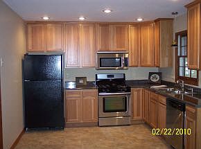 All Brick Ranch home with 3 large bedrooms and 2 baths. Kitchen has an eat-in area with a brick fireplace. Kitchen has new gas oven/range, new dishwasher and new built-in microwave. New countertops and new sink. Brand new cabinets. More kitchen cabinets were added when remodeled. Main hall bath as new ceramic tile flooring and new vanity, mirror and lighting. New carpeting in all 3 bedrooms. Master bath has new tile flooring, new vanity and mirrow, new lighting and brand new tile shower was enlarged. Living room and hall have refinished hardwood floors. All rooms freshly painted with neutral color. Garage has service door to rear yard, pull down storage ladder to floored storage above garage. New gas water heater is installed in garage. Covered front porch is 20 x 4. Large 28 ft by 12 ft deck is accessed from sliding door in kitchen. Move in condition is here for you. Huge yard with landscaping. Convenient location on northside to IU and shopping.
