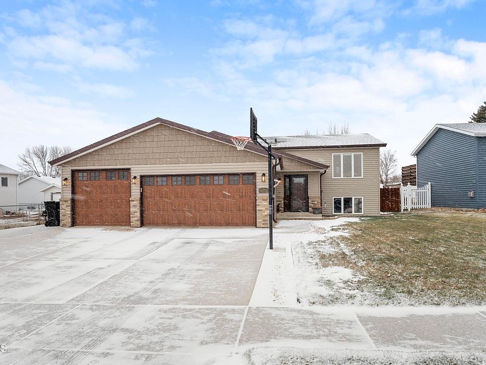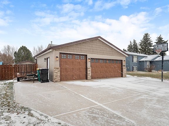 Check out this one-owner home in NE Bismarck. Upstairs features a living room, dining room and kitchen with pantry. There is 2 additional bedrooms with large walk-in closets and a full bathroom. The basement features an oversized family room with gas fireplace, 2 additional bedrooms, brand-new bathroom (fall of 2024), and laundry/utility room. The washer and dryer are included. The 3-stall garage is heated and shelves for additional storage. The backyard is fully fenced and has a 10x12' shed for additional storage. Many updates have been made to the home including in 2024 including new siding, new shingles, new garage doors, new front door and storm door. There is composite decking on the floor deck. There is new paint in the living room, stairwell, master bedroom, hallway and pantry. There is an oversized parking pad for additional parking. Seller is offering a $4,000 allowance for flooring.