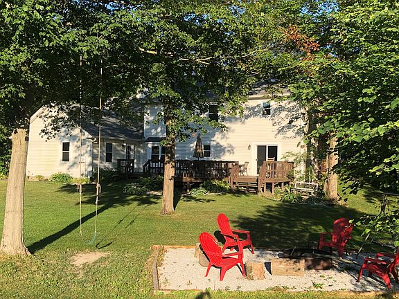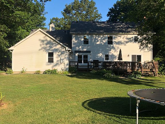Beautiful 4BD Cape Cod sits on a quiet cul-de-sac in popular Schildmeier Woods. Enjoy sitting on the welcoming front porch on those summer evenings! Spacious updated eat in kitchen features stainless steel appliances, center island, study desk, two pantries and newer lighting and flooring. Formal dining room for entertaining as well. Great room offers woodburning fireplace and french doors leading to the backyard. And the backyard! Huge deck overlooks lovely yard with mature trees and pond. Four spacious bedrooms, 3.5 BA-bonus room downstairs features private full bath and access to the deck (could easily be a 5th bedroom or in law quarters). Windows, roof and gutters all replaced in the last few years. This is a must see.