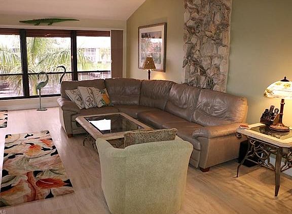 Don't miss this BeautyThis Condo is Totally Renovated. Not the typical waterfront condo with tons of work to be done. Shows like a model Condo. 55+ Condo with limited rentals keep a serene quiet retreat. Across from Jaycee Park with plenty to do there all year. Gulf Access Condo on a 200 ft. wide canal just around the bend to the River. Deep Garage for your car as well as storage. Boat Dockage available for up to a 30' boat. From the moment you step into the condo you will see the difference. Cathedral ceiling in the LR with a center piece of real stone going up the wall. On the 2nd floor with no unit above. Views are Incredible! This unit has recently been renovated throughout. New Granite in the kitchen as well as totally remodeled guest bathroom, new interior doors including molding. Interior has been painted. The condo has been repiped and the electrical upgraded. Electric hurricane shutters on the LR window and the rest have roll downs. There are 4" plantation shutters on the guest bedroom and the dining area. There are custom horizontal shades on the back windows. All the lighting has been upgraded to LED's. A must see if you want your Little Piece of Paradise.