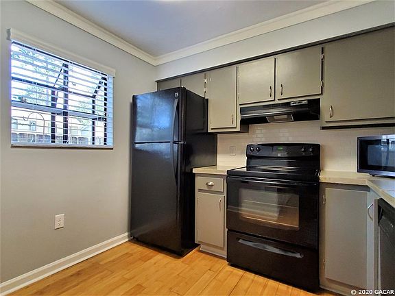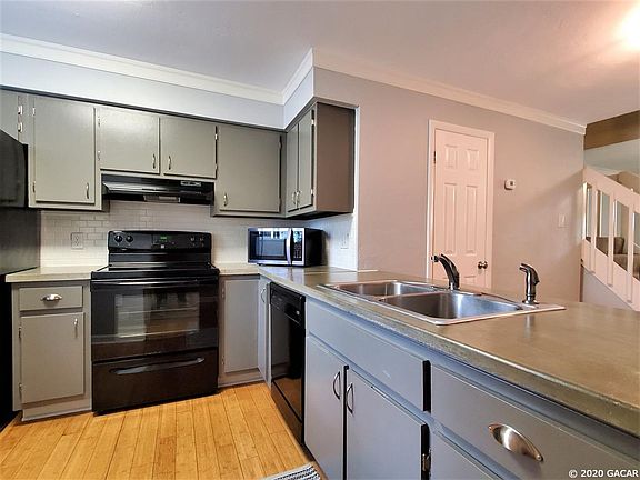 No stone left unturned in this property! Fully updated 2/2.5 end-unit in Mill Run. Located on a main bus route within close proximity to UF, Butler Plaza, Shands and all the shopping and dining Archer Rd has to offer. The kitchen features poured concrete countertops, subway tile backsplash, garden window, and pantry with built-in shelving. Bamboo flooring in living areas, crown moulding and newer fixtures throughout. Master suite has barn doors leading to spacious walk-in closet and bath. All 3 bathrooms underwent renovations in 2018 which include countertops, tiled showers, toilets, flooring and built-ins. Newer sliding glass door leads out to a tiled covered patio and privacy fenced yard. Schedule to see this one today, it won't last long!