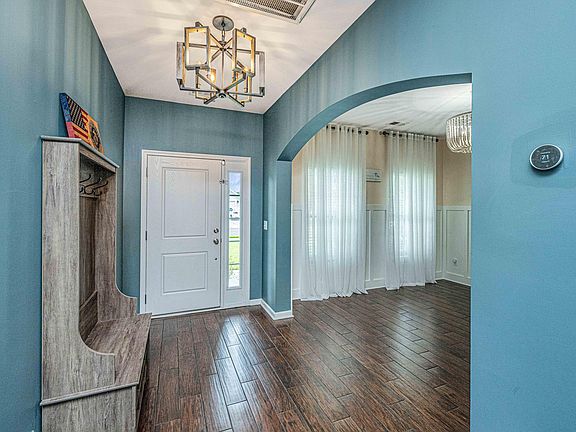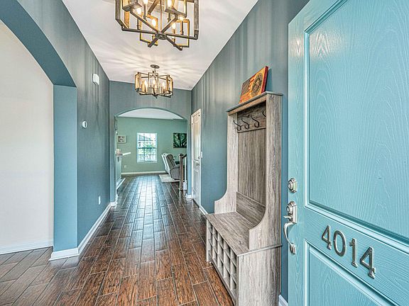Welcome to this meticulously maintained 5-bedroom home in charming Myers Mill. As you approach, graceful palm trees and pristine landscaping invite you into a warm and inviting space. Elegant tile flooring guides you through the first floor, where a versatile bedroom with French doors, off the living room, is perfect for a guest bedroom or office. The updated kitchen opens to a screened-in patio with tranquil pond views and a cozy firepit area, perfect for evenings under the stars. The spacious living room, filled with natural light, is ideal for gatherings. Upstairs, discover three additional bright bedrooms and a luxurious primary suite with ample storage and natural light. In the past 3 years, owner has installed: new roof, tankless water heater, fence & HVAC.
