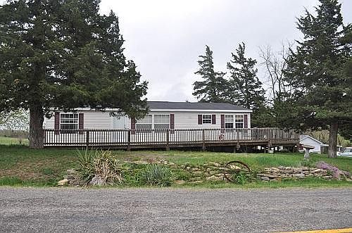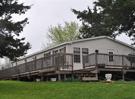 House and 40 acres! 2004 doublewide home with 3 bedrooms, 2 full baths, large living room, laundry room, large kitchen, lots of cabinets, dining area. Home sets on slab, skirting finished with stucco. Large wrap around deck, detached workshop with plumbing and electricity. Rural Water. 40 acres consists of pasture/hay ground and timber. Offers excellent hunting.