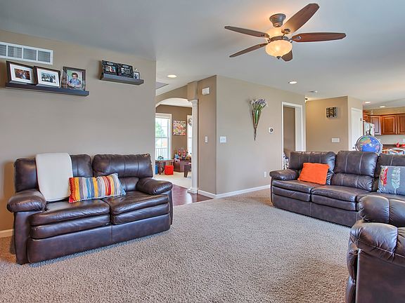 Hardwood floors entry pillars arched entry to dining room. Gas fireplace in living room open to eat in kitchen, with breakfast bar, and with stainless appliances great for entertaining. There are 4 bedrooms and 2 baths upstairs, master bedroom has bath with double sinks whirlpool tub as separate shower. Cathedral ceilings in all of the upstairs bedrooms. Basement has family room, bedroom and full bath. Don't miss the virtual tour with floor plan Agent Remarks: