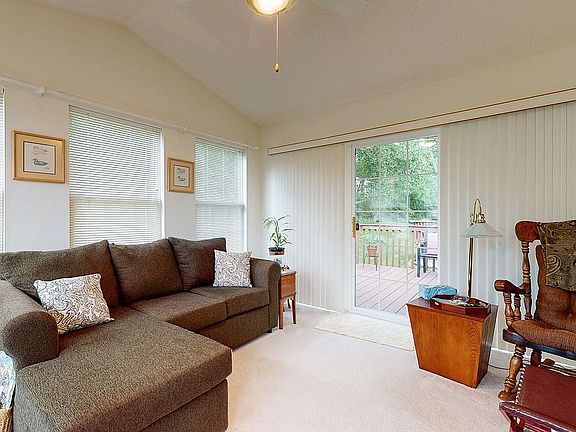 This move-in-ready end unit is located in a family-friendly neighborhood, on a quiet street, on a cul-de-sac, close to Grocery, pharmacy, shopping, restaurants, schools ( Elem and high), and churches. The main level has carpet, hardwood, tile, and vinyl floors, a vaulted ceiling, and features a fireplace and a security system. Also on the main level are 2 bedrooms, 2 full baths, and laundry. The kitchen features hardwood floors, laminate counters, a pantry, and a breakfast bar. Appliances stay with the home. The master bedroom is located on the main level and features carpet floors, vaulted ceiling and walk-in closet. The attached master bath includes tile floors, laminate counters, and a tiled shower. The finished lower level features a fireplace, 2 bedrooms, a full bath, and a storage area. Outside you'll find a treated wood deck and three seasons porch overlooking the yard with mature trees. Call today for a private showing! Property Improvements: - New Washer/ Dryer - 2020 - Dishwasher - 2020 - Microwave - 2021 - New Flooring Throughout - 2018