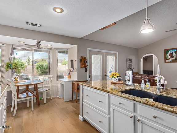 Call for a tour this home is a must see!! Single-level home in North Canyon Ranch, located in north Glendale, AZ, offers a rare combination of desirable features, a north/south exposure and backing to a green belt, it provides a tranquil setting. This 4 bedrooms and 3 bath home boasts ample space for family or guests. Conveniently situated near the I-17 and AZ Loop 101, offering easy access to transportation routes around town. Constructed with solid block walls, it offers durability and insulation. Inside, you'll find vaulted ceilings that create an open and spacious atmosphere. Split floor plan provides privacy and separation between bedrooms. Primary bedroom has spacious ensuite and private den/study with entrance to backyard oasis. Updated open kitchen concept with breakfast corner, new cabinets, granite counter tops, and all appliances included.