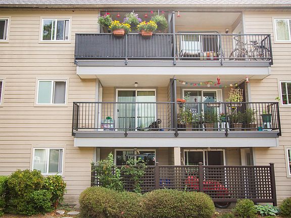 West facing top floor 2 bdrm unit with great mountain views on your balcony with an additional privacy screen on the railing. Lots of natural light with 2 skylights, a very functional layout with an island kitchen, laminate flooring throughout with tile in kitchen and bathroom. This complex had a recent new deck membrane, windows and roof. Covered parking, storage locker and walking distance to all amenities, shopping restaurants and Canadian tire and London drugs just to name a few.