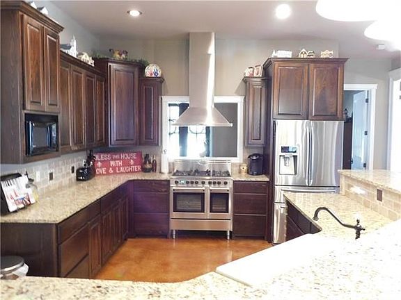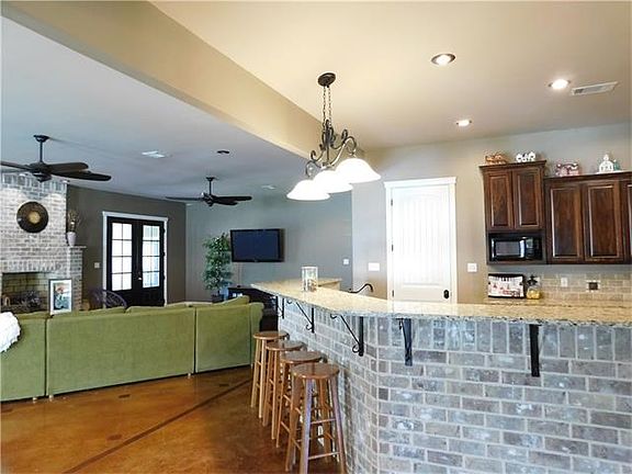 Elegant & spacious home is 5 yrs. young w/6B 3B & sits on .77 of an acre. Kitchen has large pantry, gas stove lots of cabinets, granite counter tops and is open to dining and living room w/fireplace. Master bathroom has custom shower, jacuzzi tub, dual sinks, large closet that opens to the bathroom & bedroom. 4th bedroom is being used as an office w/door that leads to front porch. Additional Garage/Man-cave is 1568 sq. ft. with sink/toilet hookups. No carpet & No Flooding!