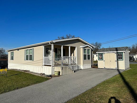 It’s not often a doublewide home comes available in the beloved Big O Mobile Home Community, so don’t miss out on this opportunity! This is a very lightly lived in, 3 bedroom, 2 full bath, 1152 square foot home. Situated on a spacious corner lot with large back yard. Paved driveway right outside the front door, vinyl storage shed, and a lovely covered porch perfect for relaxing. Modern but cozy interior with an open concept kitchen/living space, separate laundry room with rear entrance, master suite, 2 additional bedrooms and a hall bathroom. This home has Central A/C and the heating system is being converted to propane forced air, with a new burner scheduled to be installed shortly. Located on a quiet country road just minutes outside of downtown Macungie. This is a fantastic location in East Penn School District. Lot rent in Big O is just $435/month including water, sewer, and trash collection. Please note that dogs are NOT allowed in the community. Total annual real estate taxes are about $1,000 with the Homestead Discount. Financing programs are available to qualified buyers.