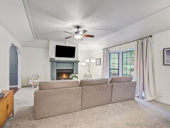 Welcome to your new Modern & Stylish Home!! This 3 Bed, 2 Bath home is located in a Highly Sought-After Neighborhood! This adorable home is available just in time for the Holidays! Discover this beautifully updated 3-bedroom, 2-bathroom residence nestled in one of Tulsa's highly desired neighborhoods with Jenks schools. This home seamlessly combines modern style with timeless charm, offering the perfect blend of comfort and elegance. With 3 Spacious Bedrooms there's plenty of room for rest, relaxation, and personalization and all with walk in closets. The modern Formal Dining Room is perfect for hosting dinner parties, holiday gatherings, or creating memorable family meals. The cozy fireplace is amazing to warm up your evenings in the inviting living room all the while you can sit by the bay window and enjoy looking outside. The kitchen is off the formal dining with it's own bar, pantry and an oversized eat in space in front of the bay window adding lots of light. A new built in oven and microwave along with a new roof and the seller is adding a home warranty for buyers peace of mind. This home is ideal for entertaining guests with the openness of the home as well as the backyard. A covered patio with a rock garden for a firepit is a prefect setting for relaxing after a long day or any kind of outdoor game. Forrest Creek neighborhood pool and park available for residents of this subdivision. Use of pool requires $ membership or daily pass - All with no HOA fees! Check out why this home is perfect for YOU!