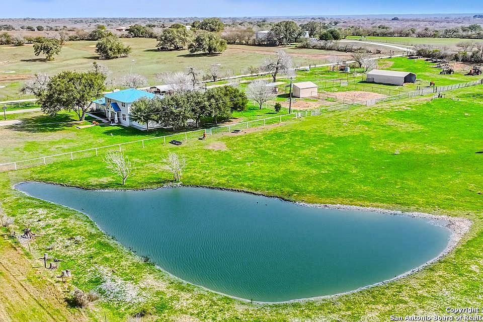 Experience the charm of this sprawling ranch home set on 17 scenic acres in North Bee County. Ideal for animal enthusiasts, bring your Longhorns, Quarter Horses, or FFA projects to enjoy the pens and corrals. Livestock will appreciate the large, picturesque tank near the house or the smaller one in the pasture. This beautiful 4-bedroom, 3-bath home underwent a thoughtful 2020 renovation, introducing an open floor plan and a downstairs primary suite. The den, featuring a wet bar and drink cooler, offers a peaceful view of the tank. At the heart of the home is a bright, welcoming kitchen showcasing new cabinetry, a white porcelain farmhouse sink, and rich wood countertops-perfect for cooking and family time. Upstairs, a flexible landing area invites game nights or quiet study. Three generous bedrooms, a full bath, and ample storage complete the upper floor. The well-appointed mudroom contains the washer, dryer, freezer, and more storage, plus another full bath nearby for added convenience. A 2-car carport on a slab can easily be enclosed to create a garage with the addition of a wall and doors. Sidewalks offer seamless access throughout the property, and the spacious patio is ideal for morning coffee or evening stargazing. Pipe fencing surrounds the home, creating a safe and welcoming environment. Additional features include 2 water wells, a barn, 2 stalls, a feed room, cross fencing, and a 3-trap setup-meeting every ranching need. Located just east of Mineral on FM 623, this property provides a peaceful setting without sacrificing accessibility.; Original MLS#: 113400; Deed Restrictions: ; Features: Porch-Front; Home Warranty: No; Land Dimensions: 17; Land Size Apx: 17; Room List: Kitchen/Dining, Living/Dining; Showing: Appointment Needed; Water District: Yes; Water Heater: Electric; Windows: Thermal; Zoning: Residential