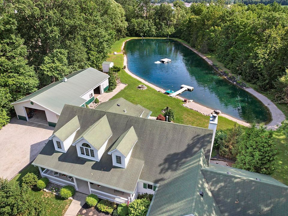 Stunning One-of-a-Kind Paradise awaits you on 3.54 fenced Acres w/this Beautiful Custom Built 4,322 SF 4 Bdr., 4.5 bath home. A 40x60 insulated outbuilding that houses an 1800 SF Fin Man Cave/She Shed & 20x30 Shop. A 1-1/4 Acre stocked pond w/Brock Dock, Raft & aerator fountain all surrounded by woods, nature, perennials, wildlife & landscape galore! 2 Story Foyer w/plant shelf & windows grace entrance! The DR has hardwood flooring open to the sunroom overlooking this retreat! The LR is Open to the kitchen w/Hickory cabinets, a walk-in-pantry & Lg wrap around breakfast bar w/bar stools. Main Level Master suite w/jetted tub, separate shower, and walk-in-closets. 2 bdrs up w/Full baths & walk-in-closets in each bdr. Dormers in both bdrs on front & rear. 4th bdr/office in LL, w/exercise room & a full bath as well. GR & Fin Mechanical room ready for your safe & trophies! Daylight Windows in LL & 2nd staircase from bsmt to walk-up into 3 car att gar. The 30x40 Man Cave/She Shed has a 12 Ft Custom built raised bar, refrigerator & 50-gallon aquarium in the bar. 60’ TV remains & is wired for surround sound. 8x8 shed, & 36x16 fenced garden area. This Home features a 14K whole house Generator, city water & sewer. The Home is currently occupied, please do NOT Drive on lane without a scheduled appt. Gate will be unlocked for showings.