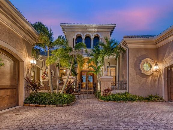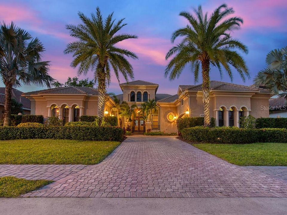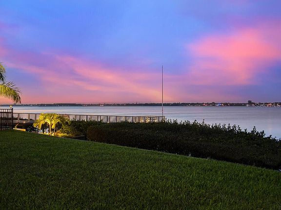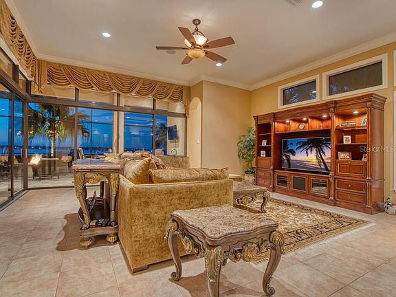 Astounding water views are yours to enjoy every day of the year along with miraculous sunsets as the new owner of this four bedroom classically beautiful waterfront residence behind the secure gates of exclusive Hawk Island. You have over a half acre of rare dual sided water frontage, offering private protected dockage on a salt water canal with direct access to the Gulf of Mexico at your front door and unobstructed, captivating Manatee River views to the rear. A Rutenberg design, this well cared for home lives elegantly on one level with a wonderful chef's center island kitchen featuring a six-burner gas cooktop & double ovens, opening onto a large family room on the water with pocketing doors opening it all to the expansive caged pool deck, creating an amazing outdoor living experience. There is a fully-equipped summer kitchen with bar seating, a deck of beautiful travertine tile, an artfully designed heated pool with intricate tile trim, its cascading spa and three water spouts along with a built-in fire pit to gather under the stars with friends and family. There is a private office with French doors, formal and informal dining and a living room with a grand fireplace and wet bar. And your master suite is a true retreat with a separate sitting room to bask in the water views, two walk-in closets, a separate dressing area and luxurious bath with dual vanity sinks, a make-up vanity, water closet, a separate oval tub and a large sun shower with dual shower heads and views to the private side courtyard to enjoy the natural light & blue sky. All three guest bedrooms are en-suite. There is also a bonus loft room with multiple possibilities, currently a theater. There are two garages housing three cars with ample drive space as well. Beautifully located, your Hawk Island Florida escape is conveniently near Sarasota, St. Pete, Tampa, 3 airports, world-class shopping, and stunning beaches, the UTC, great dining, abundant fishing, three major hospitals and so much more. Rarely available offering in this highly sought gated waterfront enclave of distinguished homes.