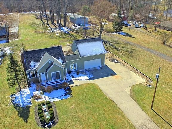 A gorgeous three-bedroom home with an oversized, loft garage and plenty of land. Bright, freshly painted living space is found throughout this updated country home. Hardwood floors fill the foyer and expansive living room, making their way down the hall and into both of the first-floor bedrooms. Each of the sunshine filled bedrooms contain ample closets and multiple windows. A main updated 2018 bath divides the rooms with an elegant vanity and large tile trimmed floor and shower. A workable updated 2018 kitchen offers a metallic backsplash which pairs well with the marbled counters and black appliances that are staying. Bright white cabinets accent the natural tiled floor. A unique dining area sits in a wood paneled room, overlooking the front yard. Upstairs, the master bedroom runs the length of the second floor with new laminate flooring and freshly painted while attic storage is nearby. A large basement is complete with additional full bath and multiple storage rooms. Splitting the home, a vinyl covered breezeway leads to the newly built garage 2010 where an unfinished, full second story loft is available. Outside offers over an acre of property with stunning concrete patios, large front deck, storage shed and concrete driveway. Updates include: septic 2007; breezeway, roof, siding, windows 2010; hot water tank 2014, water softener system 2015; new AC coil 2016. All this and a 2-10 Home Warranty! Come take in the views and quality today!
