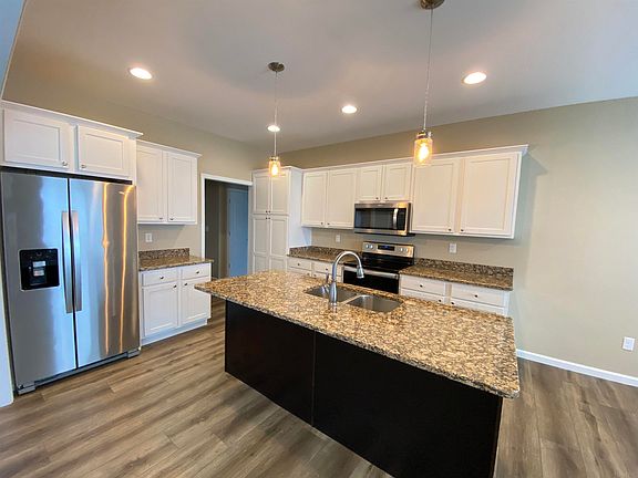 Move-in ready with possession at closing means you can be in by the holidays. This 3 bedroom, 2 bath ranch offers a split bedroom floor plan & is situated on a corner lot, offering a full sunset view. The great room offers 9’ ceilings, LVP flooring (perfect for pets), crown molding, & access to the covered back patio. The kitchen offers granite countertops with an island, stainless Whirlpool appliances & a separate dining area. The primary suite has a tray ceiling, recessed lighting & a bathroom with a double, raised marble vanity, a walk-in shower & oversized closet with organizers. There is a separate laundry room, just off the garage entry hall - ideal drop zone area. This one owner home is better than new!