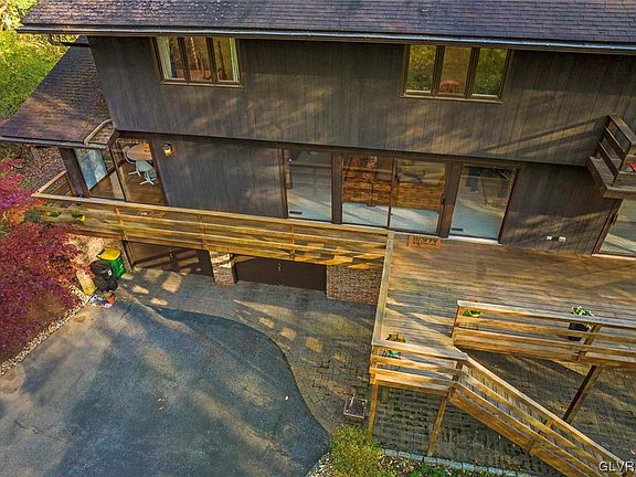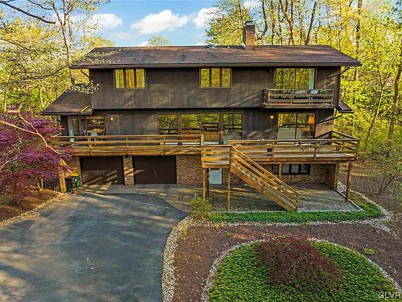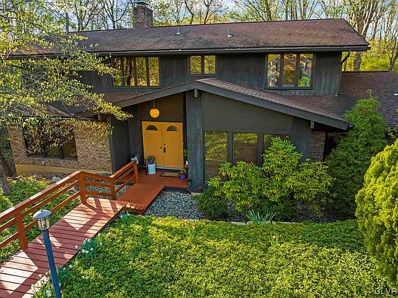 Don't miss your chance to own this unexpected private oasis in the middle of the highly sought after BROOKHAVEN DEVELOPMENT in Lower Macungie Township/East Penn School District. Well maintained by its original owners, this home has all the characteristics and features of a Robert Ashbrook original. Known for its unique design, open stairwell, floor to ceiling windows, and impeccable views, this property is one of a kind. You won't hear anything but the birds singing from the en-suite primary bedroom balcony and expansive grounds. This home features 4-5 size-able bedrooms, 3 full and 1 half bathrooms, and plenty of living space for every family configuration. The adjoining fireplaces, open concept spaces and the expansive party deck make this home an entertainers delight. With almost an acre of property, there is limitless potential for expansion. The vibe and the neighborhood make this a MUST SEE PROPERTY!!!!