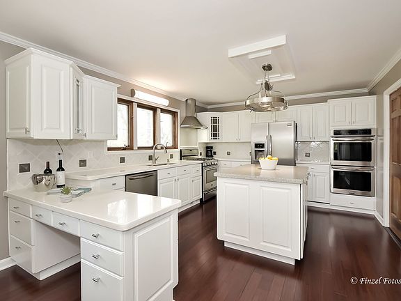 Gorgeous completely updated 4 bedroom, 4 1/2 bath home on a fantastic 1.3 acre lot in a great location! Close to everything yet set in a wooded environment! If you want space to be outside, a neighborhood feel (but neighbors not too close!) and an updated home this is the house for you! Beautiful updated kitchen with white cabinets, quartz countertops, SS appliances and hardwood floors. Master suite is on the main floor with and features a fireplace, sliding doors to the patio with hot tub and a newly updated bathroom for a true spa feel. 2 additional bedrooms upstairs each with their own en-suite bathroom! Lower level features a walkout basement with another full bath, patio and additional bedroom! Park with tennis courts, basketball court and playground is just around the corner! All this with NO HOA and Prairie Ridge High School!!!! This is such a great house and will NOT last long!