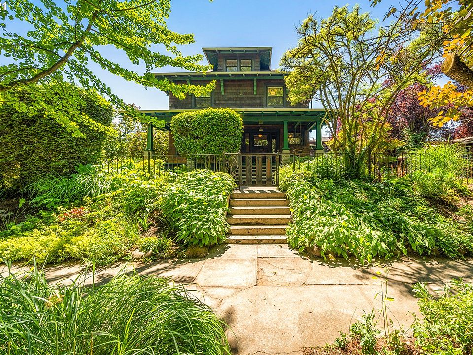 Rarely do you find a home w/ such a wonderful combination of grandeur & comfort. Featuring updated kitchen & baths, natural light, period specific light fixtures, warm natural millwork, large rooms & city views. 5 bedrooms including 4 on same floor! 6th bedroom is charming guest suite over 2 car garage w/ alley access. More potential in unfinished basement w/ great ceiling height. Choose your own adventure on the DOUBLE lot- whimsical gardens, new turf, covered porches & a private patio. Views! [Home Energy Score = 3. HES Report at https://rpt.greenbuildingregistry.com/hes/OR10065550]