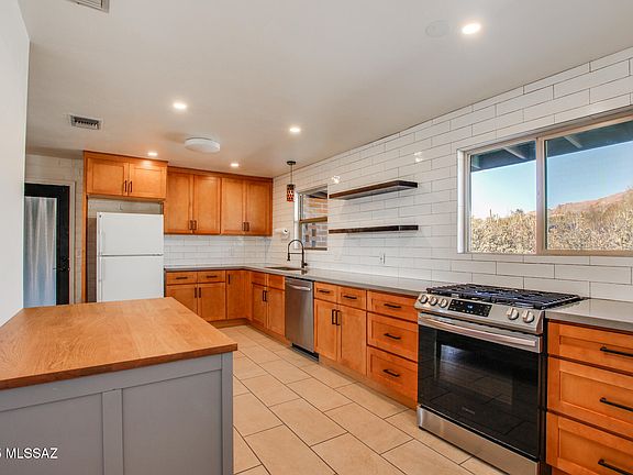 This beautifully updated mid-century home on Tucson's north side features 3 bedrooms, 2 bathrooms, and a spacious den, offering plenty of room for both private living and entertaining. The large kitchen boasts upgraded cabinetry, sleek quartz countertops, a full backsplash, and open shelving, all while providing breathtaking mountain views as you prep and cook.Both bathrooms have been completely modernized with fresh tile, sleek counters, and brand-new fixtures, adding a touch of luxury to the home. Original doors, preserved for over 60 years, shine with updated hardware, maintaining the home's vintage charm.The backyard is a low-maintenance retreat, perfect for hosting gatherings or enjoying quiet evenings. Relax under the expansive covered patio with a glass of wine or coffee... while soaking in to-die-for desert and city views. This home is the perfect blend of mid-century character and modern conveniencedon't miss your chance to own this one-of-a-kind property!