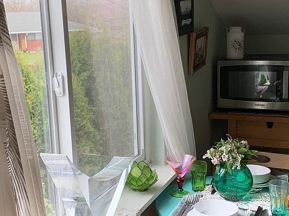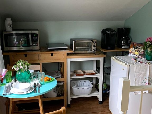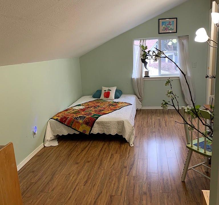 Private personal studio apartment efficiency 550 square feet. 1 bedroom 1 full bath and office or studio. Unique A frame attic artful fully independent apartment above a private home. Set up as a fully exclusive self sufficient . For one Adult . This is always has been Pet free , smoke free area . Entirely private space ( think New York style efficiency flat) with private entrance .With good neighbor immediate. Large long narrow bedroom with private bathroom bridged by an efficiency kitchen .Kitchen has Coffee maker, Microwave, toaster oven, convection oven,crock pot, brand new induction cooking system , mini fridge with a bistro table that sits at the window overlooking treetop view of the neighborhood. Then there is the separate room that acts as office,studio or entertainment area. Or the bedroom if you prefer dark room with no windows for sleep. It is in total 550 square feet personal space. Sloped ceilings in A line roof line creates a charming presence. An attic get away with lots of perks. Including Full security system. The whole space is new hard wood floors recently painted well maintained . good light , tree top views. Space has been meditated in for years and has a peaceful vibe . *Home owner lives in the ranch style house below apartment. There are resident dogs on property so sadly can't accept additional pets. The home is in a very established suburb called Park Rose by some and Argay terrace by others. The Park is across the street by 2 houses away with new tennis courts , basket ball courts and summer movies on the green. 2nd newer even bigger park 7 blocks away. One mile from Columbia river drive and the bike trail beautiful vista and good exercise. 8 minutes away from Cascade station shops ,eating establishments and the PDX airport. Immediate access to all major highways. And 2 bus lines #22 and #26 very close. There are 3 tri-met park and ride stations with in 4 miles. Looking for Mature, well mannered respectful person who prides themselves on CLEAN environment and all in for recycling. Clear Communication and peaceful interaction inclined. must have good credit, credit background will be checked . NO smoking . no exceptions . No drug use. And as little drama as real life allows for. Can be rented fully furnished (with the exception of a bed) or not as preferred. Apartment Is up 13 narrow stairs , so not sadly NOT handicap accessible.(and tough to bring in big wide furniture) . People interested in contributing to the garden and yard up keep get benefits of sharing the large private yard and are deeply appreciated. Safe Off street parking with camera security on your car , fabulous neighbors, and a full security system in place for entire house. Must have personal (besides family), as well as professional references. I will check all references. Safe bike storage . Rent is 950 dollars a month with a one year lease required Includes high speed internet and utilities no cable Washer/dryer on site available to see as of March 25th occupancy available as of April 3rd-8th ,2023 25 dollars utilities. all other internet and garbage etc. covered.