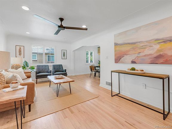 Charming tri-level home in a great location! This lovely brick home is located in a quiet neighborhood in the heart of Ridge 38 where you can walk to local shops and restaurants. Minutes away from Tennyson Berkeley restaurants, and bars. Short drive Downtown and only a short bike ride to Sloan's Lake. This newly updated home has excellent natural light features coved ceilings, refinished hardwood floors, custom plantain shutters, window coverings, and updated bathrooms with modern lighting fixtures. The third bedroom in the lower level can be a great bedroom, kids' playroom, or flex space! Step outside and enjoy a large private backyard with a covered patio, mature landscaping, and a sprinkler system (front and back). Super easy access to I-70 for a trip to Denver or the mountains. Don't let your buyer miss this one!