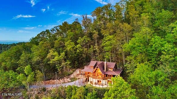 Over 180 degrees of breathtaking beauty from the lap of luxury! This Is Smoky Mountain Paradise! The mountain views are endless from this absolutely stunning custom built cabin beautifully situated on 5 acres! This is the one you've been dreaming about, and your search is done! As you drive up your private gated driveway you will be in awe! This cabin was meticulously crafted by a builder set on creating the perfect mountain retreat. When you step onto the expansive decks you will be left breathless by the views. The deck has an outdoor kitchen complete with stainless steel grills, griddle, oven, and granite countertops too. You can sit on the deck and enjoy a cozy fire in the outdoor fireplace, or sit around the fire pit on the open deck and enjoy the stars. The stunning views from the decks will leave you speechless, and the views looking out over Wears Valley will not disappoint. As you enter the front door you are met with an open great room with soaring ceilings, stack stone fireplace, and spectacular views everywhere. The kitchen boasts lots of cabinets and granite counter tops, with an adjacent dining and bar that provides plenty of space to gather around the kitchen. The beautiful wood tongue-and-grove, and gorgeous wood beams create the perfect blend of elegance with a cozy charm. Also on the main floor you will find the primary suite with French doors leading out to the deck. The primary bathroom is its own sight to see. Complete with a Sauna room, copper Japanese soaking tub, and separate walk in shower, you won't want to leave. There's a huge walk in closet too. You also have an additional half bath that is ideally located on the main floor. As you head upstairs you find a large den with high ceilings and lots of seating space to relax and unwind. This room would also make an ideal gaming area. On this level you have a 2nd primary bedroom with a walk in closet, and a large bathroom with a walk in shower.