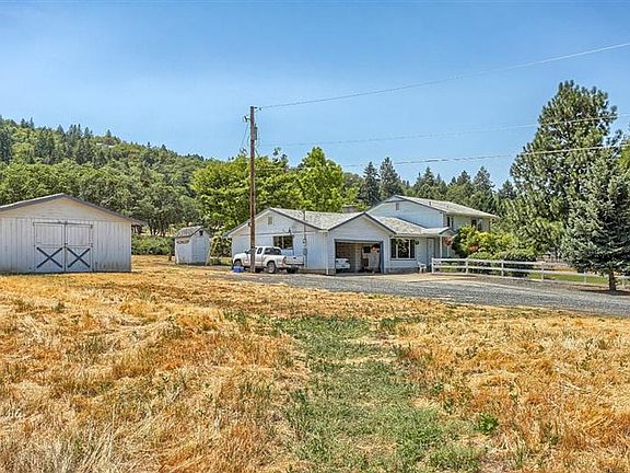 Location and Privacy! A beautiful country home located within minutes to Jacksonville and Medford. This great farmhouse features 2,100 square feet, 3 beds, 2 full baths and open floor plan. This home sits at the back of the 11.68 acres. (all 11.68 acres irrigated with TID) The property also has mature berry plants, picturesque valley views and relaxed living in a peaceful setting. The zoning is RR5, and the property can be divided. The 11.68 acres and can be divided per county into 2-five acre parcels.