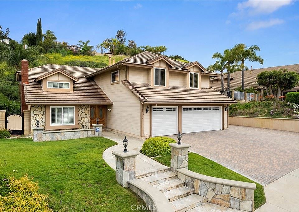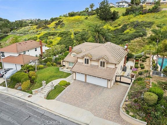 Wonderful traditional style home on a large private lot situated in one of the most desired neighborhoods in Yorba Linda. This light and airy Baldwin home exudes warmth, character and an open floor plan. Enter through the double door foyer with sweeping staircase and large living room with vaulted ceilings, warming stone fireplace and expansive dining room with glass slider. Updated cherry wood kitchen with granite tops and backsplash, gas cook top, double ovens, refrigerator all open to the family room and overlooking the beautiful backyard. Large family room with wet bar, gas fireplace and French doors that open to the entertainers yard. The lower level is complete with main floor bedroom, bath and inside laundry room. Upstairs are 4 additional bedrooms with one being a huge bonus or game room. Large primary suite and full bath arena with soaking tub, walk in shower, his and her vanities and dual walk-in closets. The front bedroom is a game room that is almost 600 sqft with entertainment center. Two additional large bedrooms with a large full hall bath complete the upstairs. Walk out to your private entertainment paradise with huge covered flagstone patio, large artificial turf lawn and two spacious side yards with RV Parking. Complete with a 3 car garage and unbelievable location right around the corner from San Antonio Park, Chino National Forest and some of the best hiking and biking trails. Zoned for some of the best schools in Orange County with Yorba Linda High School, this is truly a home and not a rental!