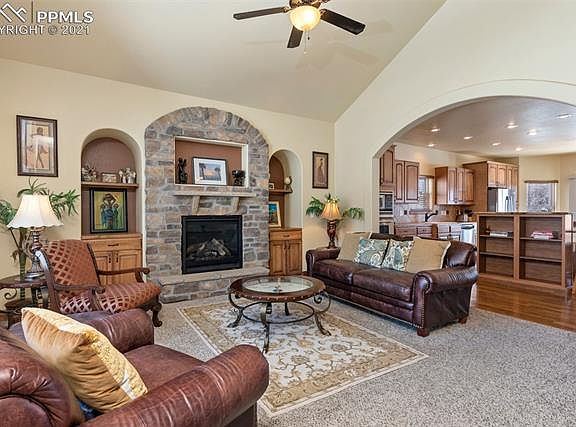 Stunning single family home in the desirable gated Broadmoor Village. This home backs to open space, boasts mountain views and designer finishes throughout. The main level is open and bright, featuring beautiful hard wood flooring, arched entries, vaulted ceilings, gas fireplace, gourmet eat-in kitchen and formal dining room. The gourmet kitchen features an oversize granite island w/ gas cook top, SS appliances and tons of counter and cabinet space. Main level master bedroom features, trey ceiling, walkout, 5 piece bath and huge custom walk-in closet. Upstairs boasts loft/office space with walk out to Juiet balcony as well as a second master with walk-in closet, walkout to private balcony and attached full bath. Upstairs also features an additional bedroom and shared full bath. You will find endless possibilities in the fully finished basement with two large family rooms, perfect for a theater room, rec area, play room, craft space, office, whatever you dream there is room in the basement. There are also 2 bedrooms and shared 3/4 bath. No landscape maintaince required as all landscape is done by the HOA. Walk out and enjoy the Colorado sunshine on your private stamped concrete patio that backs to open space. This home is conveniently located near shopping and entertainment with easy access to Hwy 115.