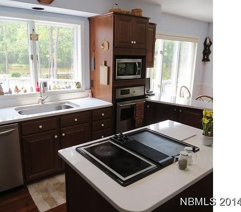 -Impressive, contemporary waterfront takes full advantage of gorgeous waterside views from it's huge sundeck with retractable awning, a âgrillingâ deck for entertaining, plus an inground pool, Pergola, additional screened porch and covered deck. Waterside LR features a striking Marl stone fireplace and vaulted ceiling while your gourmet kitchen boasts a Jenn-Air table top and new quartz counters. This home truly needs to be seen to appreciate all it has to offer. A Private Pier with 2 slips is also included. See Attached Feature Sheet for additional information.