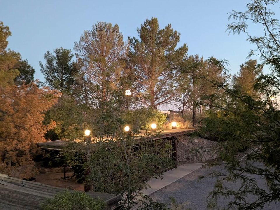 Back on the market with a BRAND NEW certified septic system and drain field installed summer 2025! This energy efficient 3 bedroom 3 bath underground house is a masterpiece of creative mid-century architecture. Taking inspiration from other renowned architects like Frank Lloyd Wright and Christopher Alexander, the late New Mexico architect Duane Dorsey created this beautiful, peaceful retreat for his own family many years ago. Natural light is invited into the center of the home via walls of sliding glass leading out into 3 large atriums, and despite being nearly 4' underground, each bedroom and bathroom is also bathed in natural light through carefully placed skylights and beautiful stained glass interior windows. A detached 10 car garage and workshop coupled with a truly incredible amount of thoughtful built-in storage throughout the home makes this a perfect retreat for anyone with hobbies that require a lot of space.