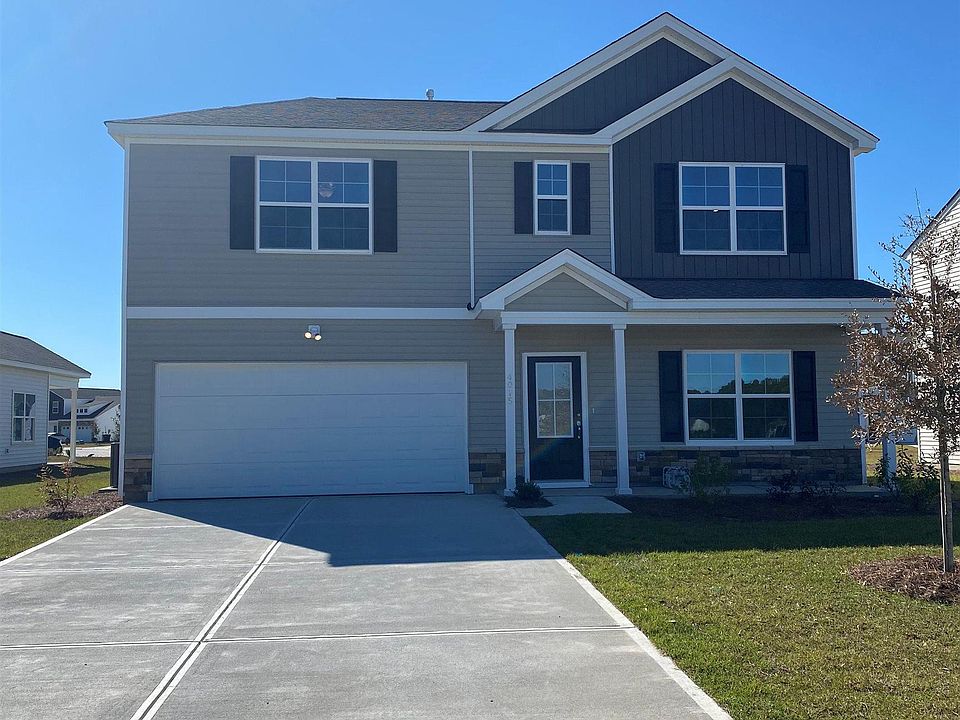 This home features four bedrooms, including a guest suite on the first floor, three full bathrooms and a covered back porch. On the main floor, the kitchen has upgraded white cabinets, granite countertops, and GE stainless steel appliances. Luxury vinyl plank flooring runs throughout the open concept kitchen, eat-in area and living room. Upstairs you’ll find the primary bedroom offers two walk-in closets and en suite bathroom featuring a raised vanity with dual sinks and quartz countertops. The additional two bedrooms also feature walk-in closets and share a full bathroom. The loft and conveniently located laundry room round out the upstairs.