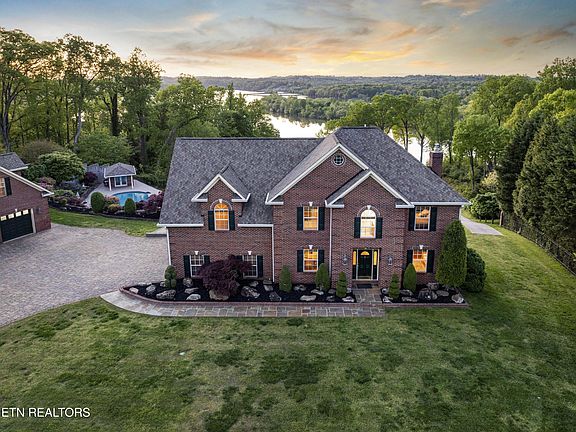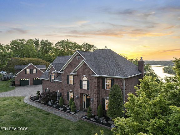 Perched above the scenic Tennessee River and set on 3.54 pristine acres, this custom-built lakefront estate is where timeless design meets unmatched views. Located just minutes from downtown Knoxville and the University of Tennessee, this rare property offers the best of both worlds—peaceful seclusion and unbeatable convenience. This exceptional lakefront estate offers breathtaking panoramic views of the Tennessee River and surrounding mountains from nearly every room, filling the home with natural beauty and a sense of calm from sunrise to sunset. Whether you're sipping your morning coffee in the kitchen or winding down in the great room, the ever-changing views create a serene, picturesque backdrop for everyday living. Step outside to the resort-style saltwater pool, perfectly positioned to take in the sweeping vistas, and surrounded by an expansive lounging area ideal for relaxing or hosting gatherings. The adjacent pool house with a stylish dry bar makes entertaining effortless—pour a drink, catch the game, or mingle with guests without ever leaving your private oasis. Just steps away, a rustic post-and-beam pavilion anchors the lakeside setting, complete with an open fire pit area—the ultimate spot for storytelling under the stars, cozy evenings with friends, or roasting s'mores while watching the boats glide by. Every detail of this outdoor living space was thoughtfully designed to blend luxury, comfort, and unforgettable natural beauty. Enjoy effortless lakefront living with year-round deep-water access from your private shoreline. The low-maintenance Trex decked dock offers both durability and beauty, extending your outdoor living space right over the water. Launch your adventures with ease using the hydraulic boat lift, designed for smooth, secure access to the river at a moment's notice. For added fun and flexibility, dual jet ski ports are ready for spontaneous spins across the lake—perfect for family weekends or entertaining guests with a splash of adren
